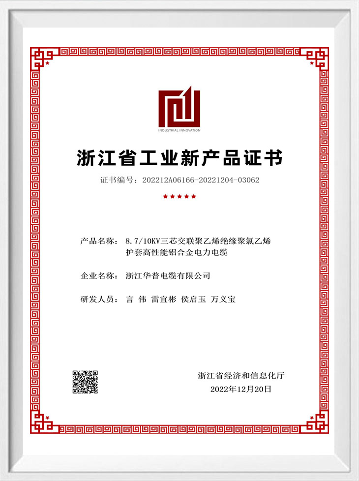 Сертификат новой промышленной продукции провинции Чжэцзян