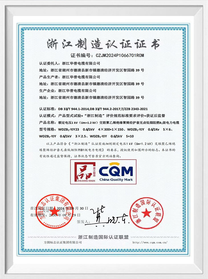 Сертификат сертификации производства Чжэцзян