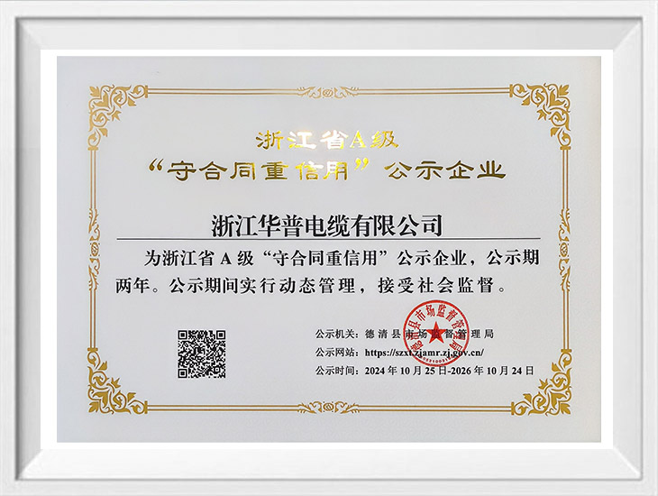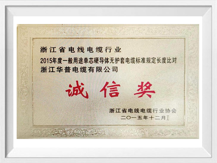 Премия за честность в кабельной промышленности провинции Чжэцзян