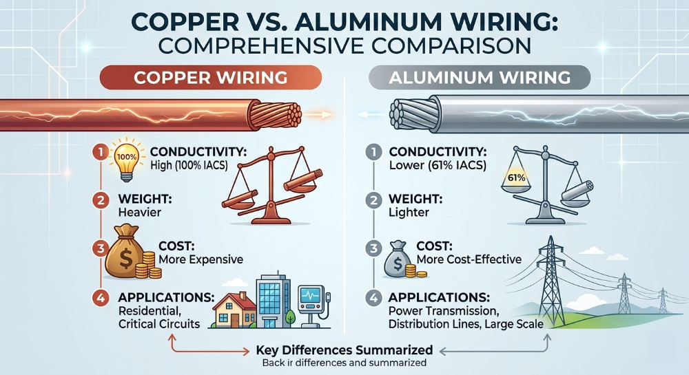 Медную и алюминиевую проводку часто сравнивают в электротехнике, поскольку оба материала широко используются, но служат разным потребностям. Медь известна своей более высокой проводимостью и компактными размерами, тогда как алюминий легче и экономически выгоднее для многих крупномасштабных применений. В этом руководстве объясняются плюсы и минусы медной и алюминиевой проводки, чтобы читатели могли выбрать правильный вариант с учетом производительности, бюджета и требований к установке.
