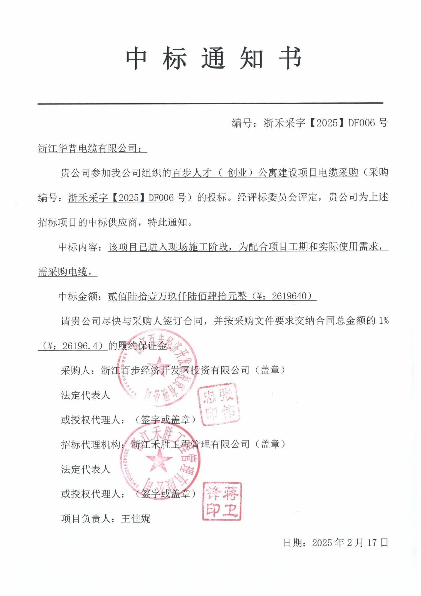 Извещение о победе в тендере на закупку кабелей для проекта строительства апартаментов для талантливых специалистов (предпринимателей) в районе Байбу