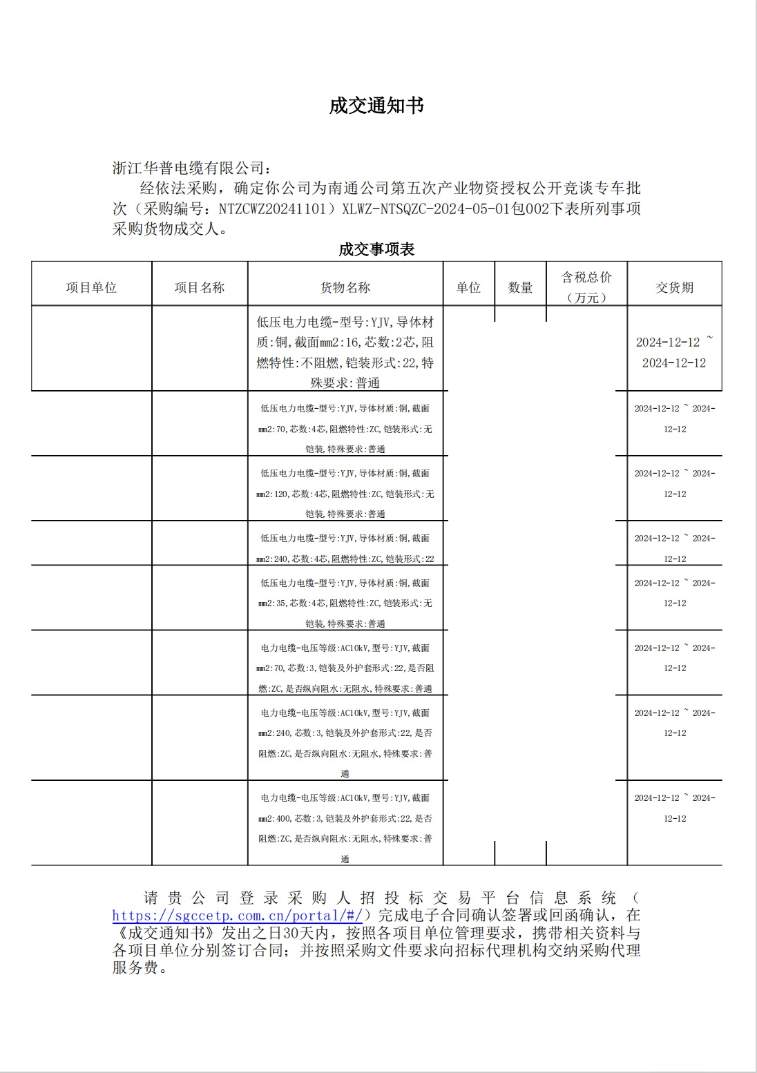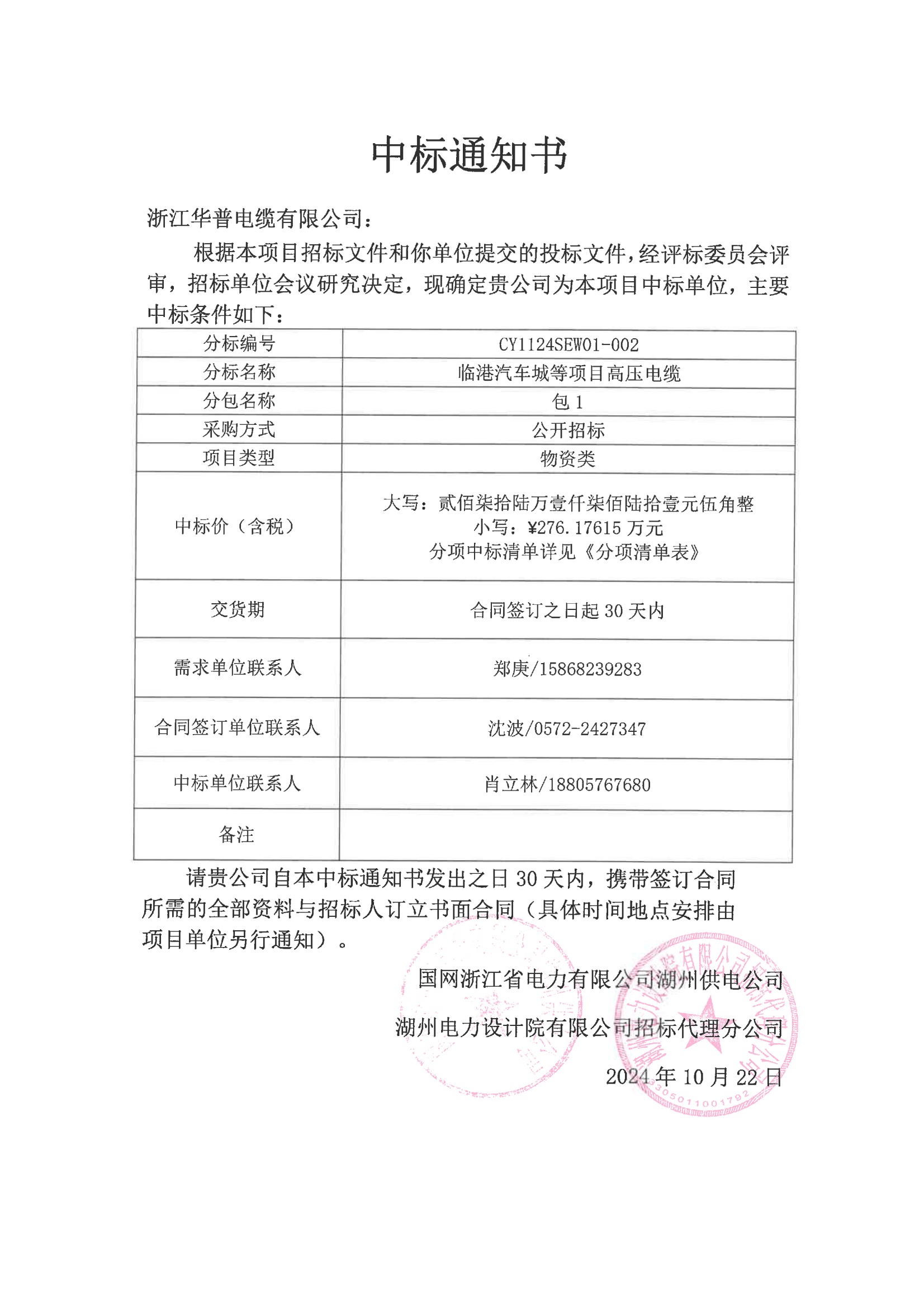 (Извещение о победе в тендере на высоковольтную продукцию) По итогам 5-й провинциальной авторизованной открытой закупки материалов для провинциальной промышленности от компании «Huzhou Power Supply Company» (подразделение «State Grid Zhejiang Electric Power») в 2024 году